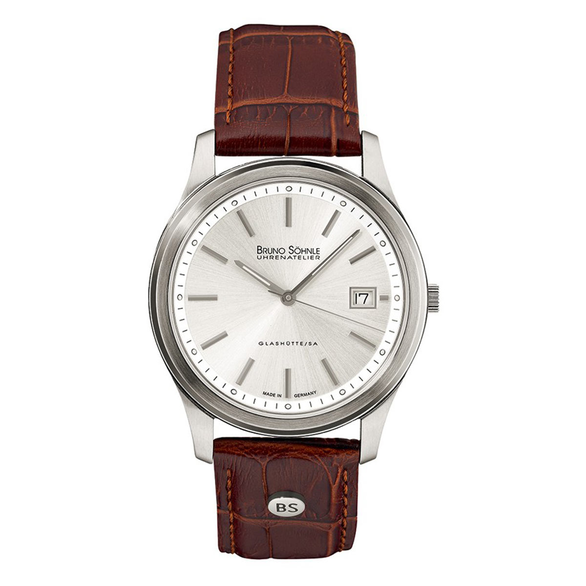 - Material Schließe: Kalbsleder mit Krokoprägung und brauner Naht | silberfarbene Edelszahldornschließe