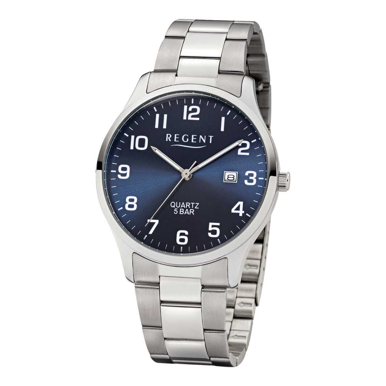 Uhr für Senioren mit großen Zahlen, blaues Zifferblatt | Regent